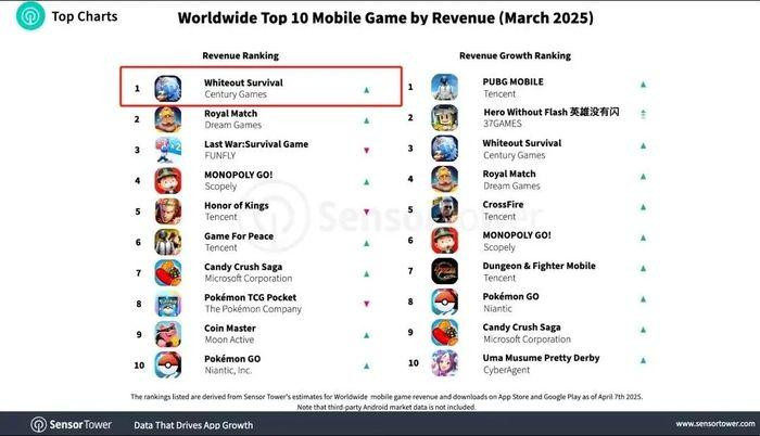 这背后最主要的原因是点点互动拥有一款火爆全球的SLG《无尽冬日》(在港澳台地区叫做《寒霜启示录》,在英文市场则叫做《WhiteoutSurvival》),它同时在移动端与微信小游戏端称雄,是目前的全球市场收入最高的SLG。